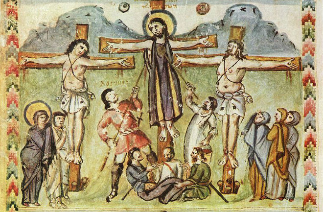 The Rabbula Gospel, 6 საუკუნის ილუსტრირებული ბიბლია. 6 საუკუნიდან მოყოლებული, მხატვრებმა დაიწყეს ჯვარცმული მაცხოვრის გამოსახულებების დახატვა.