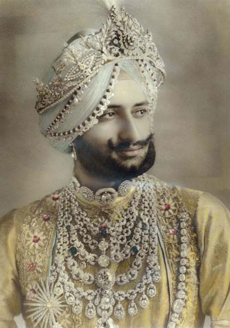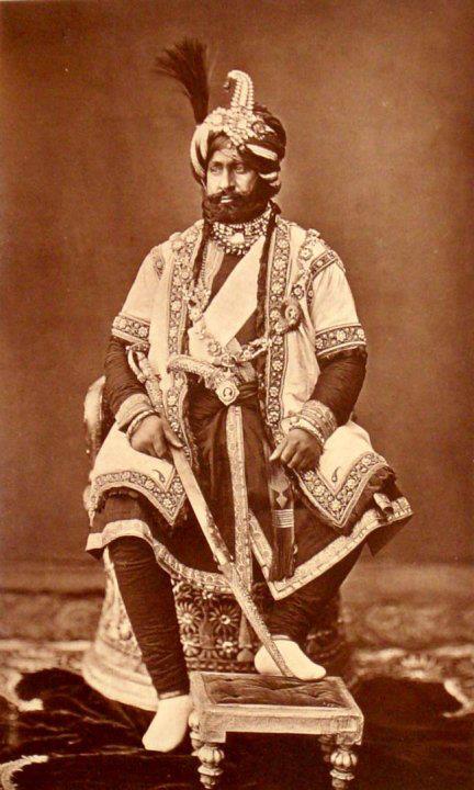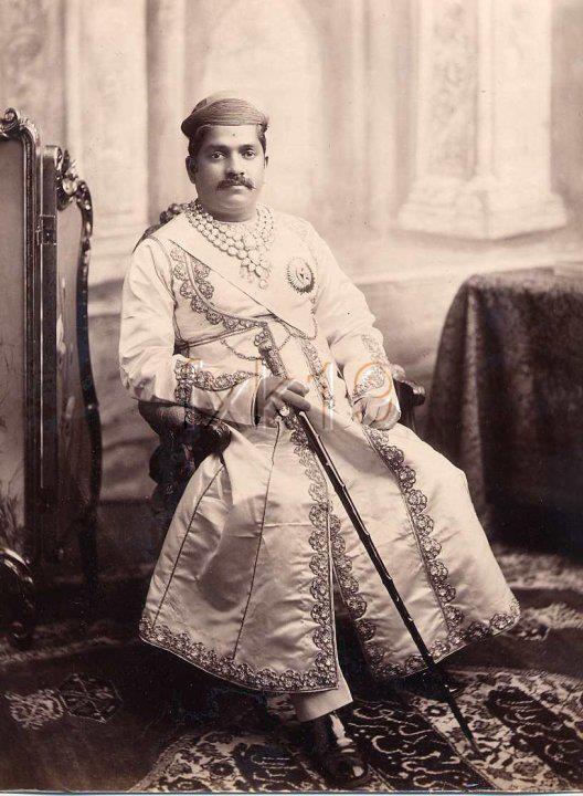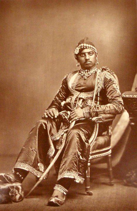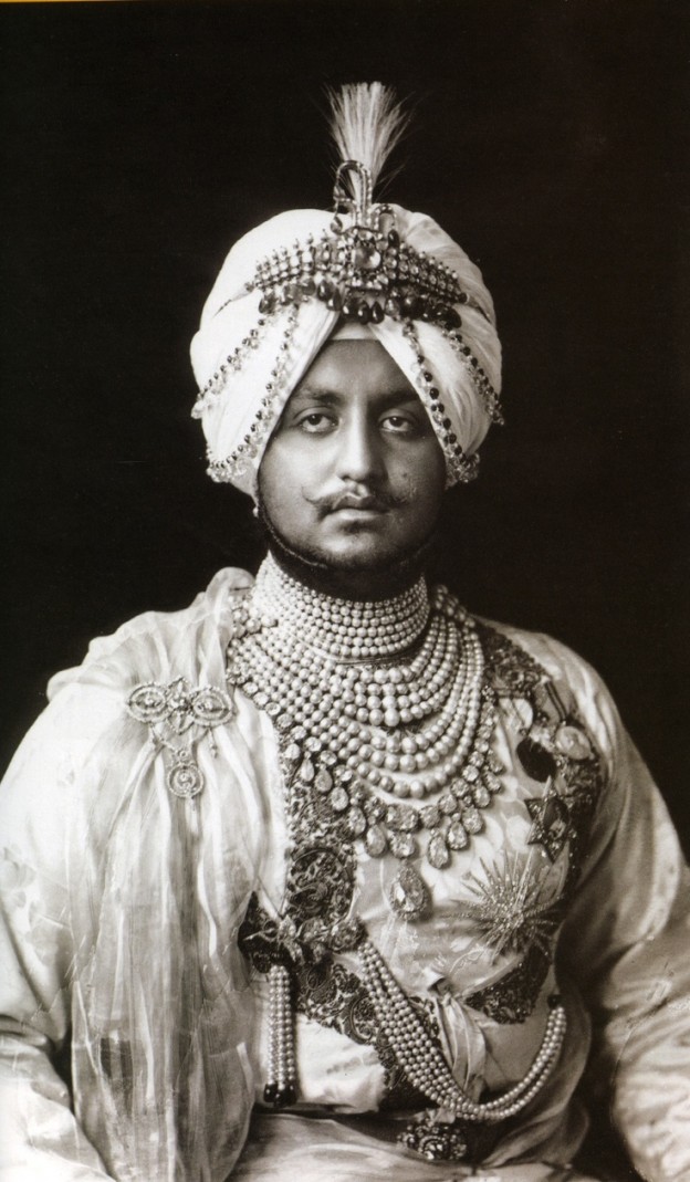 Maharaja Sayaiji-Roa, Gaekwar, Baroda. 1902. 19 საუკუნის ბოლოდან ყველა მაჰარაჯა იღებდა სურათს საგვარეულო სამკაულში. ამას 7 ფენა ბრილიანტები უკეთია ყელზე.